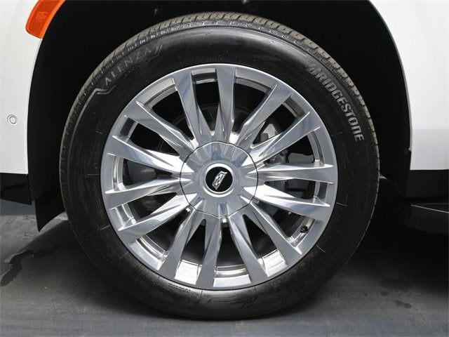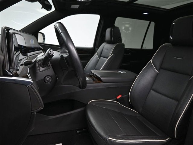 This Escalade Premium Luxury is nicely equipped with Preferred Equipment Group 1SB (Adaptive Cruise Control, AKG Studio 19-Speaker Audio System, Automatic Seat Belt Tightening, Automatic Stop/Start, Door Lock & Latch Shields, Enhanced Automatic Emergency Braking, Enhanced Automatic Parking Assist, Glass Breakage Sensor, Lane Change Alert w/Side Blind Zone Alert, Mechanical Limited-Slip Differential, Power Panoramic Tilt-Sliding Sunroof, Rear Camera Mirror, Rear Camera Mirror Washer, Rear Cross Traffic Alert, Reconfigurable Full-Color Head-Up Display, Reverse Automatic Braking, Running Board Assist Steps, Start/Stop System Disable Button, Theft-Deterrent Alarm System, Vehicle Inclination Sensor, and Vehicle Interior Movement Sensor), 4WD, Black Leather, 16.9 Diagonal OLED Infotainment Screen, 19 Speakers, 1st 2nd & 3rd Row All-Weather Floor Mats (LPO), 2-Presets Memory For Driver Seat Adjuster, 3.23 Axle Ratio, 3rd row seats: split-bench, 4-Wheel Disc Brakes, 8-Way Power Driver Seat Adjuster, 8-Way Power Front Passenger Seat Adjuster, ABS brakes, Air Conditioning, Alloy wheels, AM/FM radio: SiriusXM with 360L, Apple CarPlay/Android Auto, Audio memory, Auto High-beam Headlights, Auto tilt-away steering wheel, Auto-dimming door mirrors, Auto-dimming Rear-View mirror, Automatic temperature control, Brake assist, Bumpers: body-color, Compass, Delay-off headlights, Driver door bin, Driver vanity mirror, Dual front impact airbags, Dual front side impact airbags, Electronic Stability Control, Emergency communication system: OnStar and Cadillac connected services capable, Four wheel independent suspension, Front anti-roll bar, Front Bucket Seats, Front Center Armrest w/Storage, Front dual zone A/C, Front License Plate Bracket, Front reading lights, Fully automatic headlights, Garage door transmitter, HD Radio, Heads-Up Display, Heated & Ventilated Driver & Front Passenger Seats, Heated door mirrors, Heated Driver & Front Passenger Seats, Heated front seats, Heated rear seats, Heated steering wheel, Illuminated entry, Leather Seating Surfaces w/Mini-Chevron Perf Inserts, Leather steering wheel, Low tire pressure warning, Memory seat, Navigation System, Not Equipped w/4-Way Driver & Fr Pass Pwr Lumbar, Not Equipped w/Steering Column Lock, Occupant sensing airbag, Outside temperature display, Overhead airbag, Overhead console, Panic alarm, Passenger door bin, Passenger vanity mirror, Power door mirrors, Power driver seat, Power Liftgate, Power moonroof, Power passenger seat, Power steering, Power windows, Premium Smooth Ride Suspension, Radio data system, Radio: AM/FM/SiriusXM w/Navigation, Rain sensing wipers, Rear air conditioning, Rear anti-roll bar, Rear reading lights, Rear window defroster, Rear window wiper, Remote keyless entry, Roof rack: rails only, Security system, SiriusXM w/360L, Speed control, Split folding rear seat, Spoiler, Steering wheel memory, Steering wheel mounted audio controls, Super Cruise, Tachometer, Teen Driver, Telescoping steering wheel, Tilt steering wheel, Traction control, Trip computer, Turn signal indicator mirrors, Variably intermittent wipers, Ventilated front seats, Voltmeter, Wheels: 22 14-Spoke Alloy w/Polished Finish, and Wireless Apple CarPlay/Wireless Android Auto.