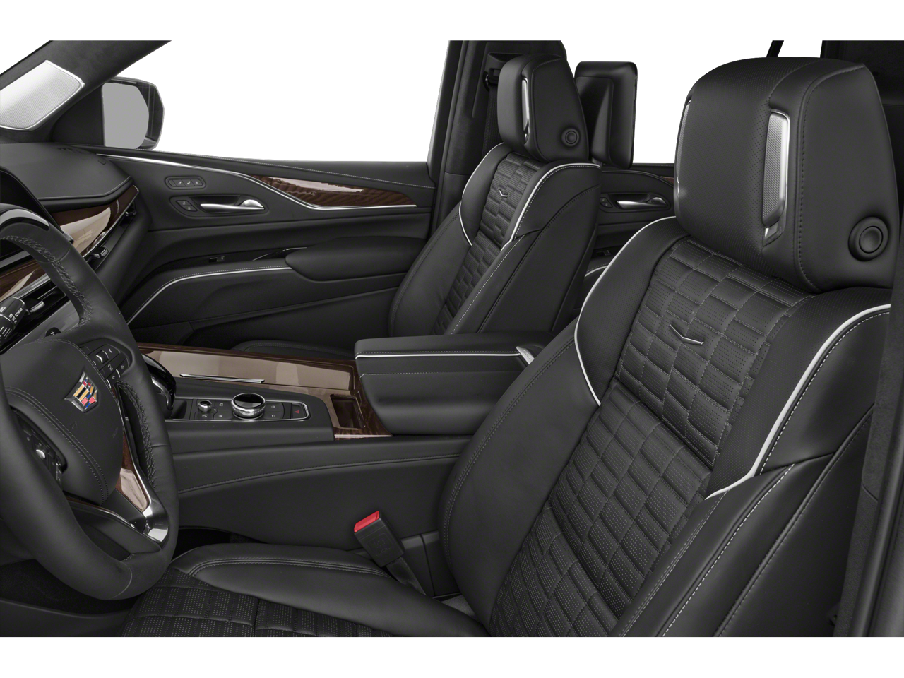 This Escalade Sport Platinum is nicely equipped with Heavy-Duty Trailering Package (2-Speed Active Transfer Case, Extra Capacity Cooling System, Trailer Tire Pressure Monitoring System, Trailering Assist Guidelines, and Wired Auxiliary Trailer Camera (LPO)), Preferred Equipment Group 1SH (Adaptive Cruise Control, AKG Studio Reference 36-Speaker Audio System, Automatic Seat Belt Tightening, Automatic Stop/Start, Body-Color Door Handles, Door Lock & Latch Shields, Electronic Limited-Slip Differential, Enhanced Automatic Emergency Braking, Enhanced Automatic Parking Assist, Floor Console w/Covered Storage, Front Auxiliary 12-volt Power Outlet, Glass Breakage Sensor, Hitch Guidance w/Hitch View, Integrated Trailer Brake Controller, Platinum Interior Trim, Power Panoramic Tilt-Sliding Sunroof, Rear Camera Mirror, Rear Camera Mirror Washer, Rear Cross Traffic Alert, Rear Seat Entertainment System, Reconfigurable Full-Color Head-Up Display, Reverse Automatic Braking, Running Board Assist Steps, Smart Trailer Integration Indicator, Start/Stop System Disable Button, Theft-Deterrent Alarm System, Trailer Side Blind Zone Alert, Vehicle Inclination Sensor, and Vehicle Interior Movement Sensor), Touring Package (Air Ride Adaptive Suspension, Illuminating Front & Rear Sill Plates, and Soft Closing Front & Rear Doors), Cadillac Certified Pre-Owned Certified, 4WD, Jet Black Leather, 16.9 Diagonal OLED Infotainment Screen, 2-Presets Memory For Driver Seat Adjuster, 3.23 Axle Ratio, 3rd row seats: split-bench, 4-Way Power Driver Lumbar Seat Adjuster, 4-Way Power Front Passenger Lumbar Seat Adjuster, 4-Wheel Disc Brakes, 8-Way Power Driver Seat Adjuster, 8-Way Power Front Passenger Seat Adjuster, A/V remote, ABS brakes, Adaptive suspension, Air Conditioning, Alloy wheels, AM/FM radio: SiriusXM with 360L, Apple CarPlay/Android Auto, Audio memory, Auto High-beam Headlights, Auto tilt-away steering wheel, Auto-dimming door mirrors, Auto-dimming Rear-View mirror, Automatic temperature control, Black Roof Rack Cross Rails, Brake assist, Bumpers: body-color, Compass, Cooled Console w/Covered Storage, Delay-off headlights, Door auto-latch, Driver door bin, Driver vanity mirror, Dual front impact airbags, Dual front side impact airbags, Electronic Stability Control, Emergency communication system: OnStar and Cadillac connected services capable, Four wheel independent suspension, Front anti-roll bar, Front Bucket Seats, Front Center Armrest w/Storage, Front dual zone A/C, Front License Plate Bracket, Front reading lights, Full Semi-Aniline Leather Seats, Fully automatic headlights, Garage door transmitter, Genuine wood console insert, Genuine wood dashboard insert, Genuine wood door panel insert, Gloss Black Escalade Nameplate (LPO), HD Radio, Headphones, Heads-Up Display, Heated & Ventilated Driver & Front Passenger Seats, Heated door mirrors, Heated Driver & Front Passenger Seats, Heated front seats, Heated rear seats, Heated steering wheel, Illuminated entry, Leather steering wheel, Low tire pressure warning, Magnetic Ride Control Suspension, Memory seat, Navigation System, Night Vision, Not Equipped w/2nd Row Express-Up/Down Windows, Not Equipped w/Steering Column Lock, Not Equipped w/Super Cruise, Occupant sensing airbag, Outside temperature display, Overhead airbag, Overhead console, Panic alarm, Passenger door bin, Passenger vanity mirror, Power door mirrors, Power driver seat, Power Liftgate, Power Lumbar Massage Driver Seat, Power Lumbar Massage Front Passenger Seat, Power moonroof, Power passenger seat, Power steering, Power windows, Power-Retractable Assist Steps, Radio data system, Radio: AM/FM/SiriusXM w/Navigation, Rain sensing wipers, Rear air conditioning, Rear anti-roll bar, Rear audio controls, Rear reading lights, Rear window defroster, Rear window wiper, Remote keyless entry, Roof rack: rails only, Security s