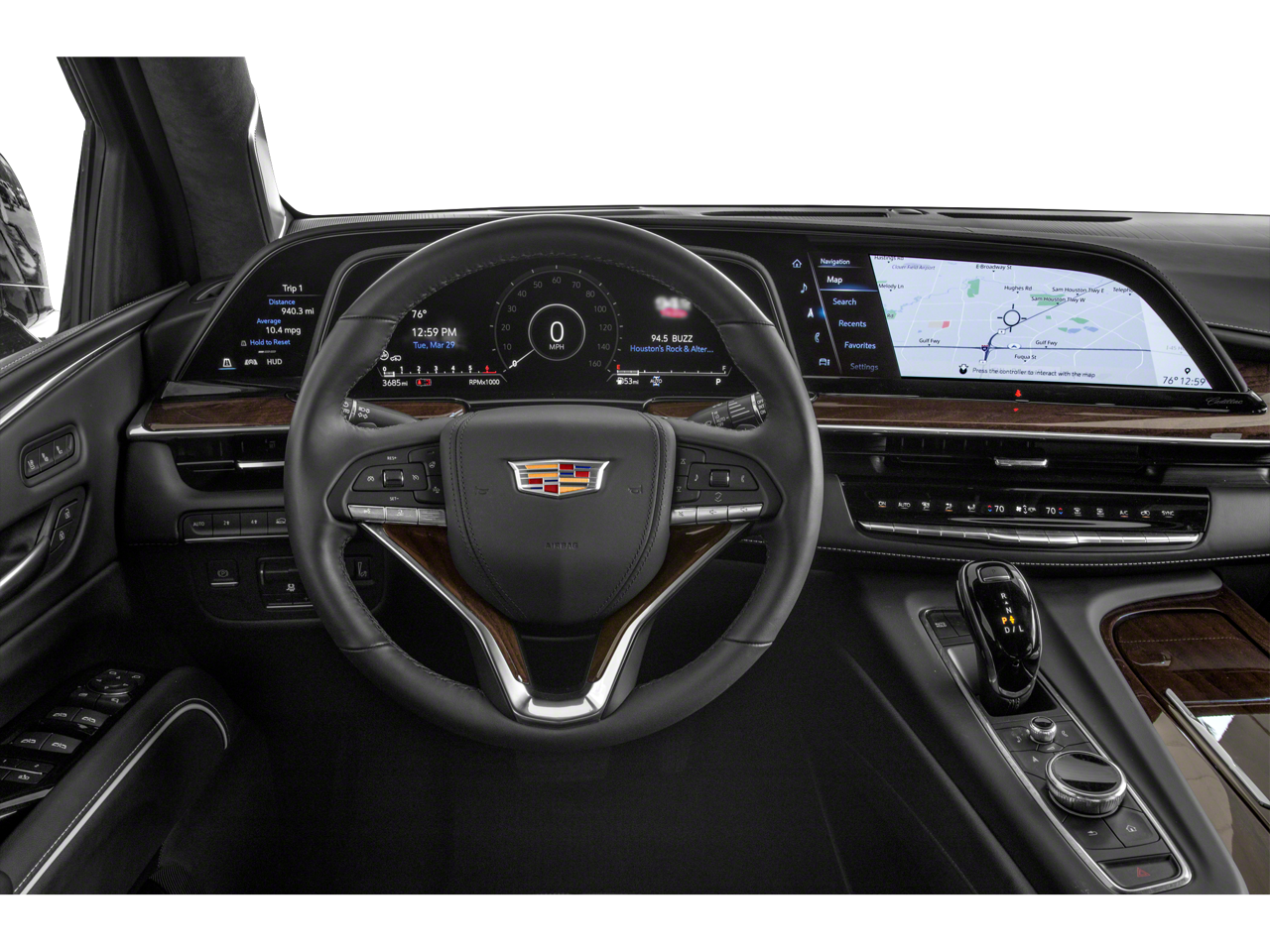 This Escalade Premium Luxury Platinum is nicely equipped with Preferred Equipment Group 1SG (Adaptive Cruise Control, AKG Studio Reference 36-Speaker Audio System, Automatic Seat Belt Tightening, Door Lock & Latch Shields, Electronic Limited-Slip Differential, Enhanced Automatic Emergency Braking, Enhanced Automatic Parking Assist, Floor Console w/Covered Storage, Front Auxiliary 12-volt Power Outlet, Glass Breakage Sensor, Heated & Ventilated Driver & Front Passenger Seats, Hitch Guidance w/Hitch View, Integrated Trailer Brake Controller, Platinum Interior Trim, Power Lumbar Massage Driver Seat, Power Lumbar Massage Front Passenger Seat, Power Panoramic Tilt-Sliding Sunroof, Rear Camera Mirror, Rear Camera Mirror Washer, Rear Cross Traffic Alert, Rear Seat Entertainment System, Reconfigurable Full-Color Head-Up Display, Reverse Automatic Braking, Running Board Assist Steps, Smart Trailer Integration Indicator, Theft-Deterrent Alarm System, Trailer Side Blind Zone Alert, Vehicle Inclination Sensor, and Vehicle Interior Movement Sensor), Touring Package (Air Ride Adaptive Suspension, Illuminating Front & Rear Sill Plates, and Soft Closing Front & Rear Doors), Cadillac Certified Pre-Owned Certified, AWD, Whisper Beige With Gideon Accents Leather, 16.9 Diagonal OLED Infotainment Screen, 2-Presets Memory For Driver Seat Adjuster, 3 Years of OnStar & Connected Services Plan, 3.23 Axle Ratio, 3rd row seats: split-bench, 4-Way Power Driver Lumbar Seat Adjuster, 4-Way Power Front Passenger Lumbar Seat Adjuster, 4-Wheel Disc Brakes, 8-Way Power Driver Seat Adjuster, 8-Way Power Front Passenger Seat Adjuster, A/V remote, ABS brakes, Adaptive suspension, Air Conditioning, Alloy wheels, AM/FM radio: SiriusXM with 360L, Apple CarPlay/Android Auto, Audio memory, Auto High-beam Headlights, Auto tilt-away steering wheel, Auto-dimming door mirrors, Auto-dimming Rear-View mirror, Automatic temperature control, Brake assist, Bumpers: body-color, Compass, Delay-off headlights, Door auto-latch, Driver door bin, Driver vanity mirror, Dual front impact airbags, Dual front side impact airbags, Electronic Stability Control, Emergency communication system: OnStar and Cadillac connected services capable, Exterior Parking Camera Rear, Four wheel independent suspension, Front anti-roll bar, Front Bucket Seats, Front Center Armrest w/Storage, Front dual zone A/C, Front License Plate Bracket, Front reading lights, Full Semi-Aniline Leather Seat Trim, Fully automatic headlights, Garage door transmitter, Genuine wood console insert, Genuine wood dashboard insert, Genuine wood door panel insert, HD Radio, Headphones, Heads-Up Display, Heated door mirrors, Heated Driver & Front Passenger Seats, Heated front seats, Heated rear seats, Heated steering wheel, Illuminated entry, Leather steering wheel, Low tire pressure warning, Magnetic Ride Control Suspension, Memory seat, Navigation System, Not Equipped w/2nd Row Express-Up Window Control, Not Equipped w/Super Cruise, Not Equipped w/Super Cruise (00U), Occupant sensing airbag, Outside temperature display, Overhead airbag, Overhead console, Panic alarm, Passenger door bin, Passenger vanity mirror, Power door mirrors, Power driver seat, Power Liftgate, Power moonroof, Power passenger seat, Power steering, Power windows, Radio data system, Radio: AM/FM w/Navigation, Rain sensing wipers, Rear air conditioning, Rear anti-roll bar, Rear audio controls, Rear reading lights, Rear window defroster, Rear window wiper, Remote keyless entry, Security system, SiriusXM w/360L, Speed control, Split folding rear seat, Spoiler, Steering wheel memory, Steering wheel mounted audio controls, Super Cruise, Tachometer, Teen Driver, Telescoping steering wheel, Tilt steering wheel, Traction control, Trip computer, Turn signal indicator mirrors, Variably intermittent wipers, Ventilated front seats, Volt