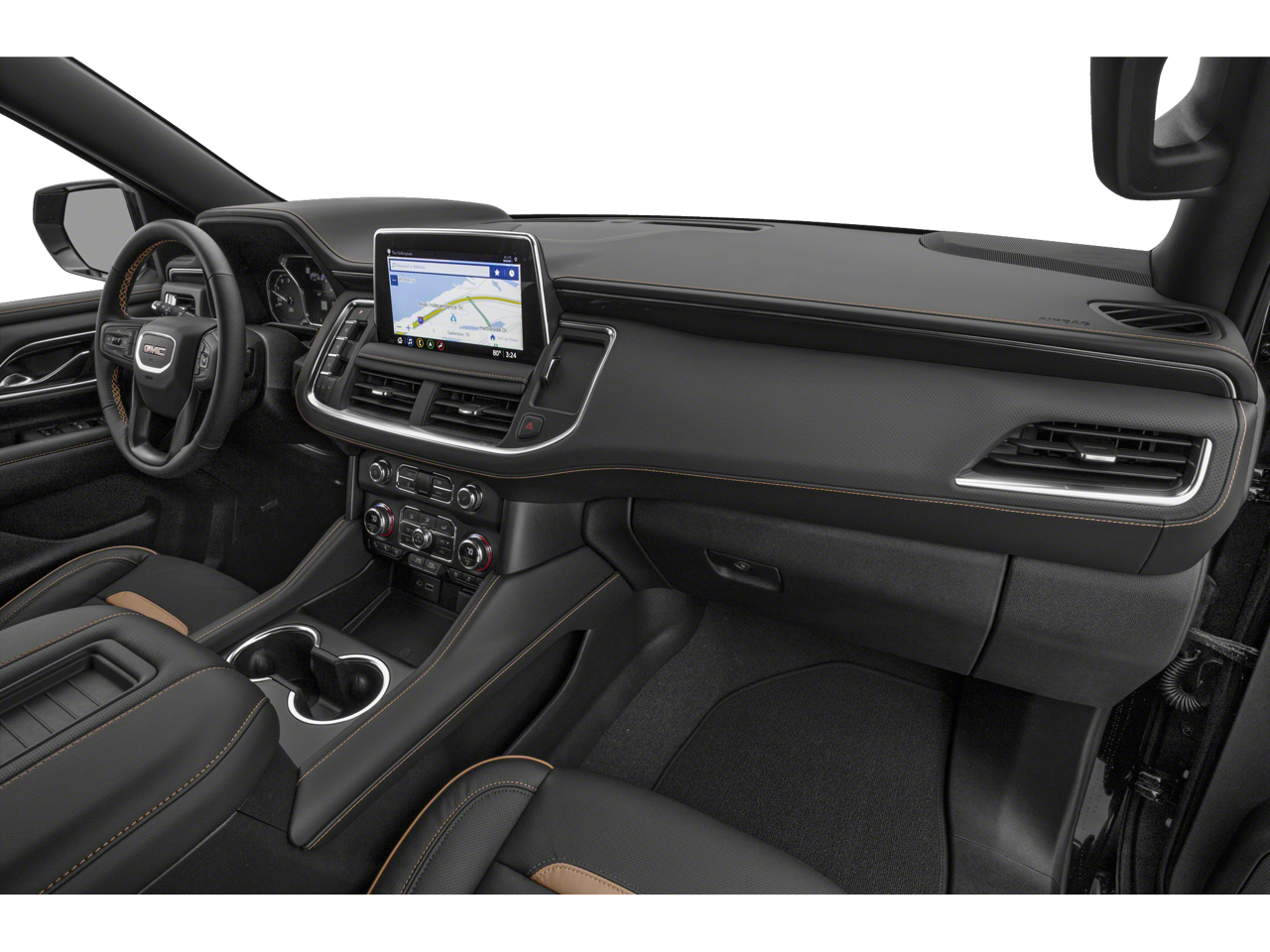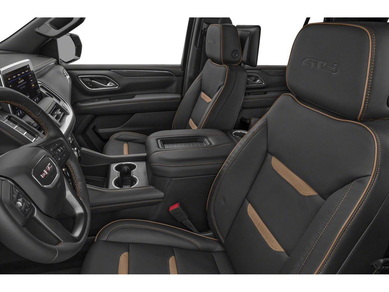 This Yukon AT4 is nicely equipped with License Plate Front Mounting Package, Max Trailering Package (Extra Capacity Cooling System), Preferred Equipment Group 4SB (2 Presets For Outside Rearview Mirrors, 3 Years of GMC Connected Services, 3 Years of OnStar Safety & Security, 3rd Row 60/40 Power-Folding Split-Bench Seat, Black Roof-Mounted Luggage Rack Side Rails, Bose 9-Speaker Stereo Audio System Feature, Bright Front & Rear Door Sill Plates, Front High-Approach Angle Fascia, Hands-Free Power Programmable Rear Liftgate, Heated & Ventilated Driver & Front Passenger Seats, Heated 2nd Row Outboard Position Seats, Heated Driver & Front Passenger Seats, Heated Steering Wheel, Heavy-Duty Air Filter, Hill Descent Control, Inside Rear-View Auto-Dimming Mirror, Outside Heated Power-Adjustable Mirrors, Power Release 2nd Row 60/40 Split-Folding Bench Seat, Power Tilt & Telescopic Steering Column, Red Horizontal-Mounted Recovery Hooks, Safety Alert Seat, Universal Home Remote, and Wireless Charging), GMC Certified Pre-Owned Certified, 4WD, 3 Years of OnStar Safety & Security (DISC), 3.23 Rear Axle Ratio, 3rd row seats: split-bench, 4-Wheel Disc Brakes, 9 Speakers, ABS brakes, Adaptive suspension, Air Conditioning, Alloy wheels, AM/FM radio: SiriusXM with 360L, AM/FM Stereo, Apple CarPlay/Android Auto, Auto High-beam Headlights, Auto-dimming door mirrors, Auto-dimming Rear-View mirror, Auto-leveling suspension, Automatic Emergency Braking, Automatic temperature control, Black Roof Rack Cross Rails, Brake assist, Bumpers: body-color, Compass, Delay-off headlights, Driver door bin, Driver vanity mirror, Dual front impact airbags, Dual front side impact airbags, Dual-Pane Panoramic Power Sunroof, Electronic Stability Control, Emergency communication system: OnStar and GMC connected services capable, Following Distance Indicator, Forward Collision Alert, Four wheel independent suspension, Front & Rear Park Assist, Front anti-roll bar, Front Bucket Seats, Front Center Armrest, Front dual zone A/C, Front fog lights, Front Pedestrian Braking, Front reading lights, Fully automatic headlights, Garage door transmitter, Heated door mirrors, Heated front seats, Heated rear seats, Heated steering wheel, Hitch Guidance w/Hitch View, Illuminated entry, Illuminated Mirror GMC Emblem (LPO), Integrated Trailer Brake Controller, IntelliBeam Automatic High Beam On/Off, Lane Change Alert w/Side Blind Zone Alert, Lane Keep Assist w/Lane Departure Warning, Low tire pressure warning, Magnetic Ride Control Suspension, Memory seat, Navigation System, Not Equipped w/4-Way Driver & Fr Pass Pwr Lumbar, Occupant sensing airbag, Outside temperature display, Overhead airbag, Overhead console, Panic alarm, Passenger door bin, Passenger vanity mirror, Perforated Leather Seating Surfaces, Power door mirrors, Power driver seat, Power Liftgate, Power passenger seat, Power steering, Power windows, Power-Retractable Assist Steps, Rain sensing wipers, Rear air conditioning, Rear anti-roll bar, Rear Cross Traffic Alert, Rear reading lights, Rear seat center armrest, Rear window defroster, Rear window wiper, Remote keyless entry, Roof rack: rails only, Security system, SiriusXM w/360L, Smart Trailer Integration Indicator, Speed control, Speed-sensing steering, Split folding rear seat, Spoiler, Steering wheel memory, Steering wheel mounted audio controls, Tachometer, Telescoping steering wheel, Tilt steering wheel, Traction control, Trailer Side Blind Zone Alert, Trip computer, Turn signal indicator mirrors, Variably intermittent wipers, Ventilated front seats, Voltmeter, and Wheels: 20 x 9 6-Spoke Machined Aluminum.