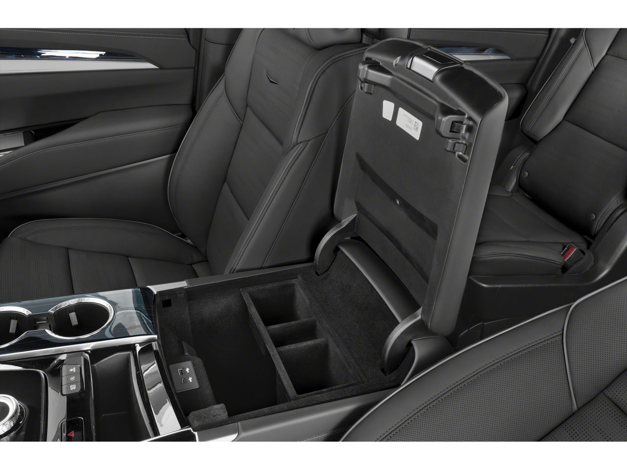 - Console, floor with covered storage, large and small storage bins, dual cup holders, electronic climate controls and second row heated seat controls. Also includes auxiliary power outlet, USB A/C ports and 110-volt outlet
